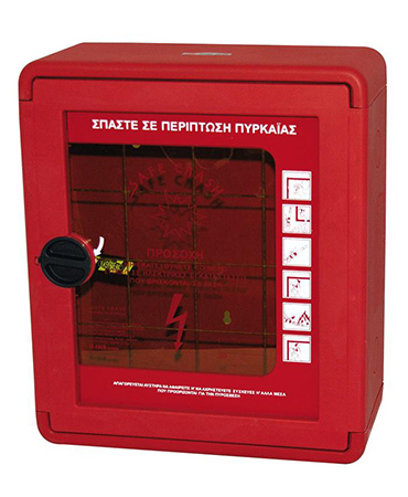 Πλαστική Πυροσβεστική Φωλιά (PVC), με Πόρτα Διάφανη Ασφαλούς Θραύσης, Υποδοχή για Κρουνό και με Σχάρα Προστασίας για Τοποθέτηση Μάνικας.