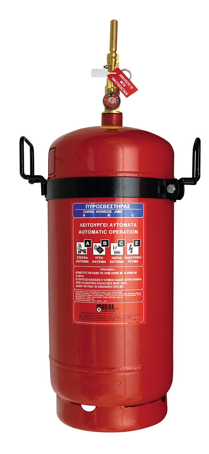 Πυροσβεστήρας Τοπικής Εφαρμογής για Πρατήρια Καυσίμων 25Kg Ξηράς Σκόνης ABC 40% με Αυτόματo πιστοποιημένο CE Κλείστρο με ασφαλιστικό και με Θέση για Πυροκροτητή 1/4” (δεν περιλαμβάνεται).