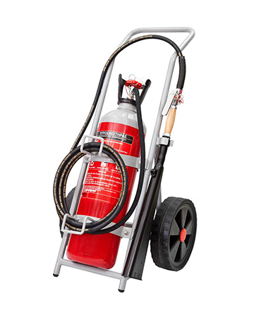 Τροχήλατος Πυροσβεστήρας 10Κg CΟ2 με Φιάλη 16Lt και με Λάστιχο Εκτόξευσης Υλικού 5 μέτρων. Πιστοποιημένος κατά EN 1866.