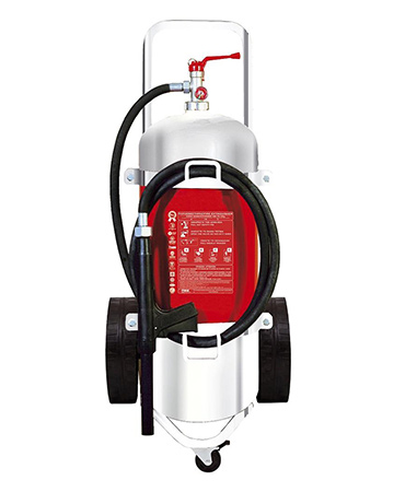 Τροχήλατος Πυροσβεστήρας, 25Lt Αφρού AFFF 6%, INOX με Λάστιχο Εκτόξευσης Υλικού 5 μέτρων και με κλείστρο με Βαλβίδα Ασφαλείας Μανομέτρου.